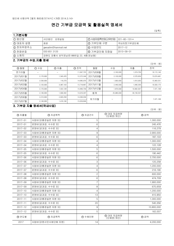 | 2016년 연간 기부금 모금액 및 활용실적 명세서 (0) | 2019.09.19 |
