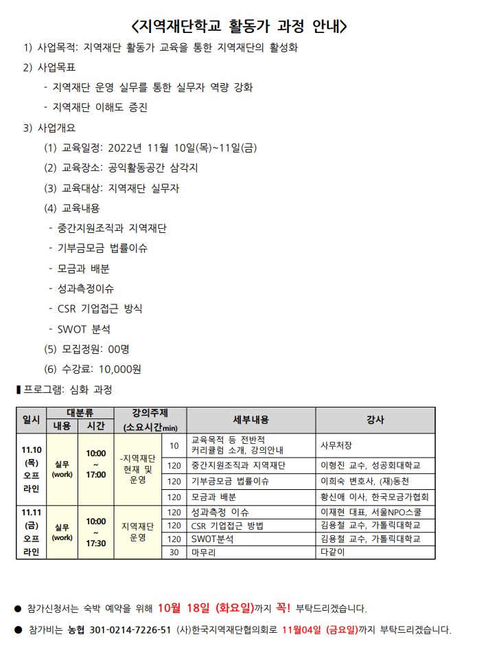 | [한국지역재단협의회] 지역재단학교 활동가 과정 (0) | 2022.10.26 |