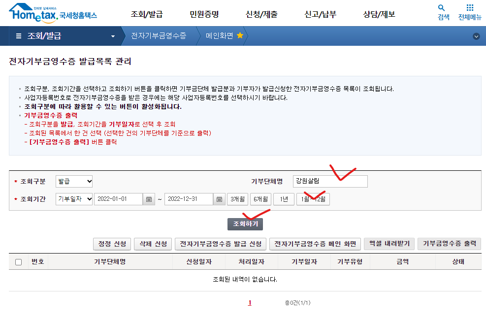 || 기부금영수증 확인방법